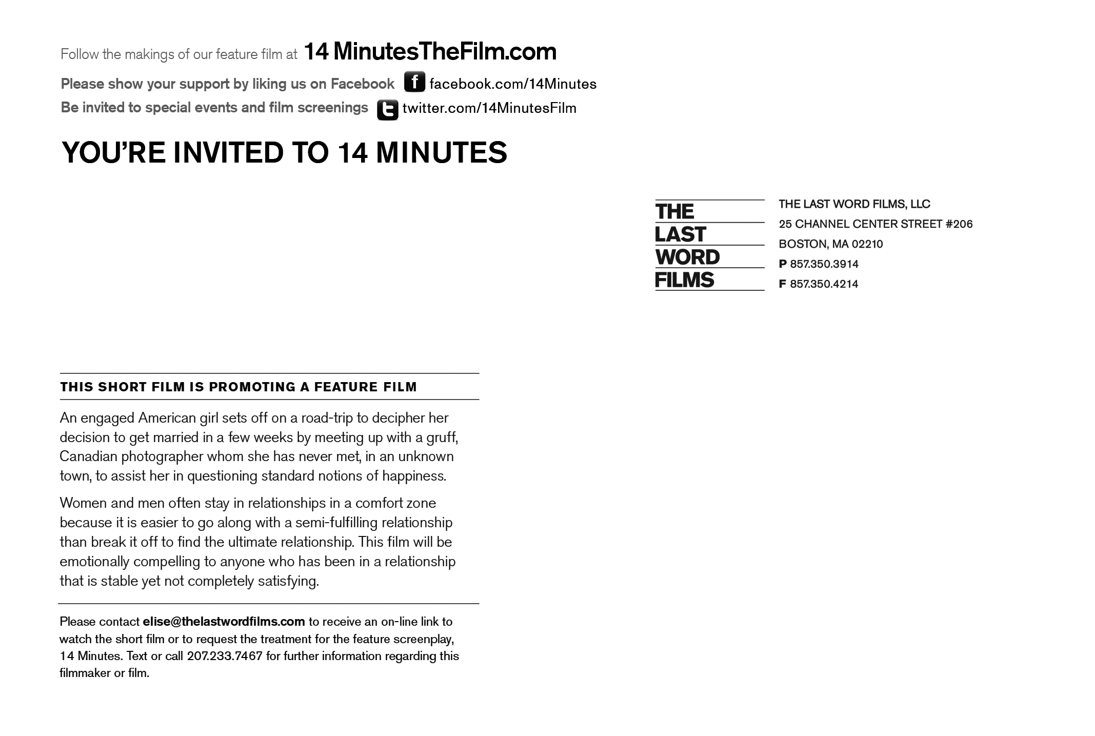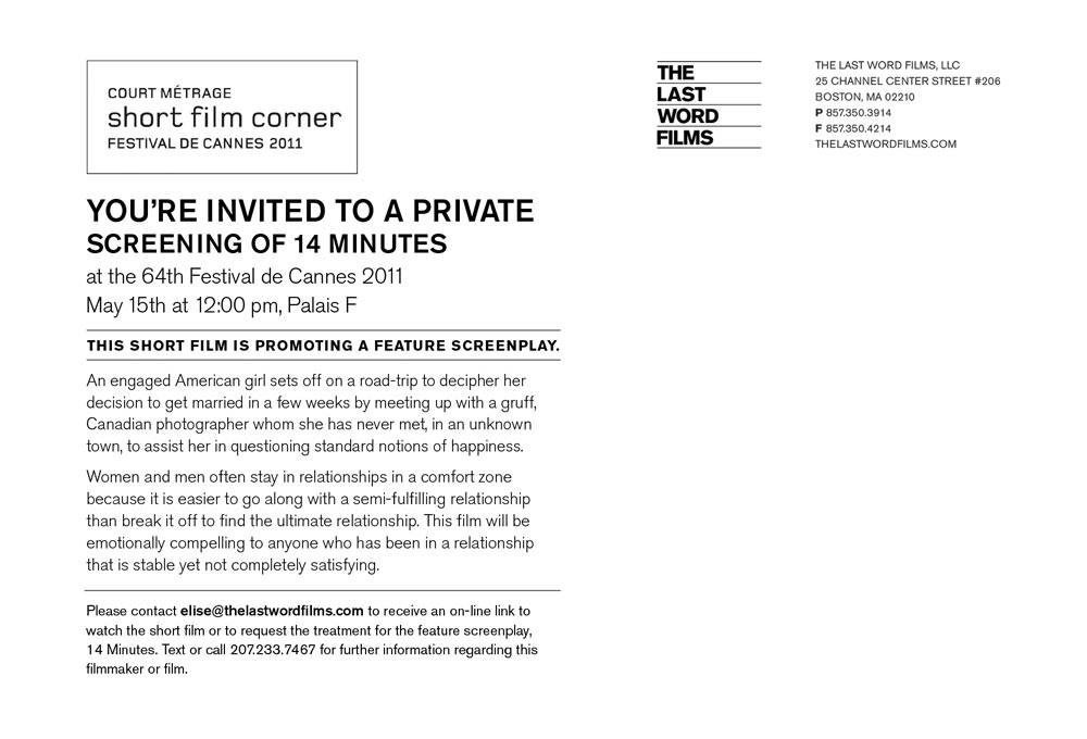 East Coast premiere of short film, 14 minutes
